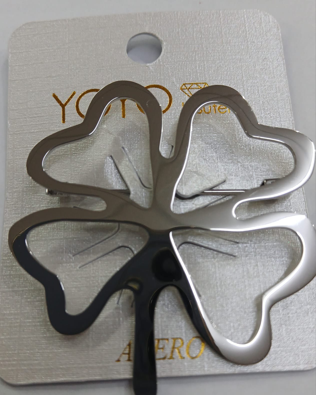 El broche en forma de trébol de 4 hojas es una pieza única que combina elegancia y simbolismo. Fabricado en acero de alta calidad, este accesorio no solo embellece tu atuendo, sino que también representa buena suerte, amor, y esperanza.
