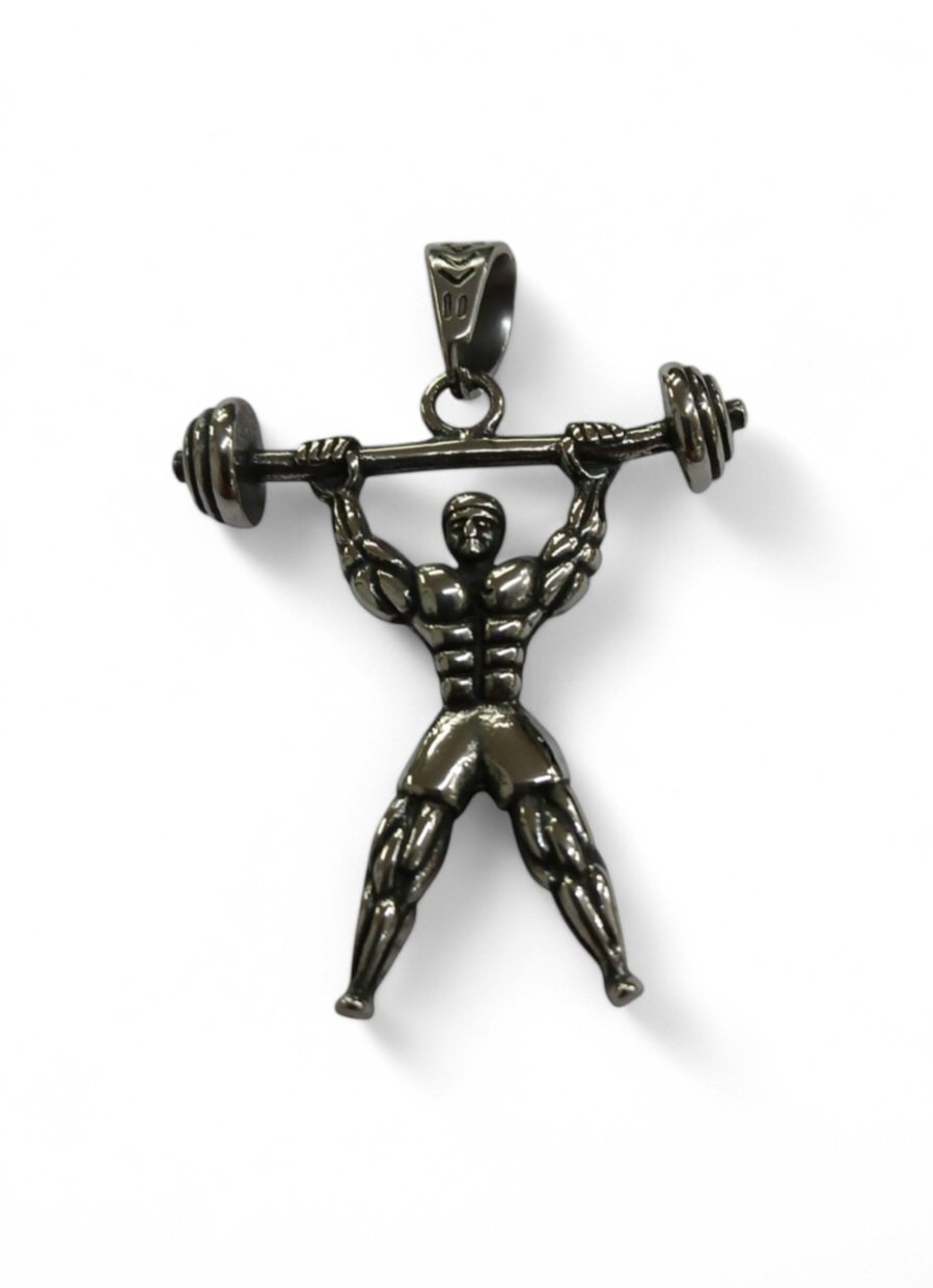 Fabricado en acero de alta calidad, este colgante está diseñado para resistir el uso diario. La durabilidad del material asegura que mantendrá su brillo y forma con el tiempo, convirtiéndose en un símbolo de tu pasión por el culturismo y el ejercicio.