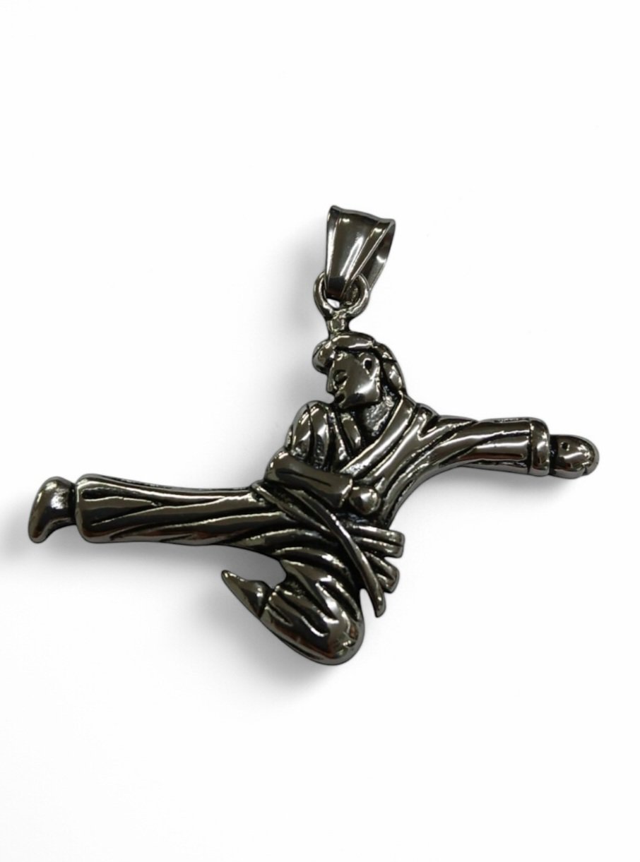 Este colgante o llavero de artes marciales, fabricado en acero, es una opción ideal para los entusiastas de las artes marciales. Con unas medidas de 26x52mm, combina perfectamente estilo y utilidad en un solo accesorio. Su diseño elegante lo convierte en un complemento atractivo para cualquier atuendo.