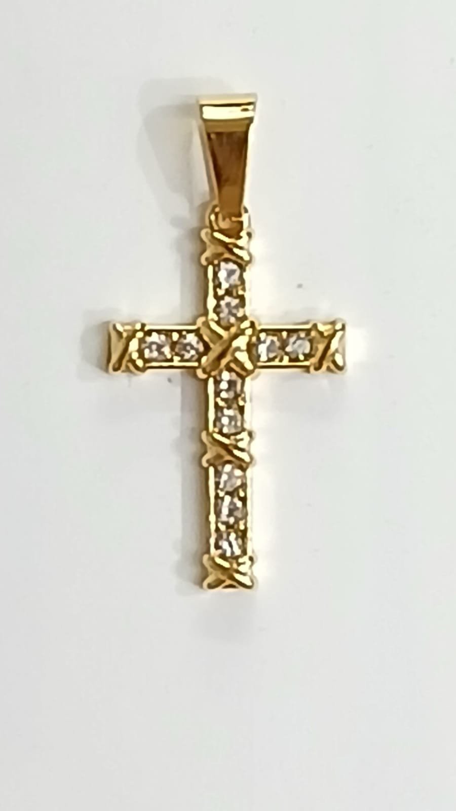 Colgante Cruz con circonitas 2,5 cm | Acero dorado
