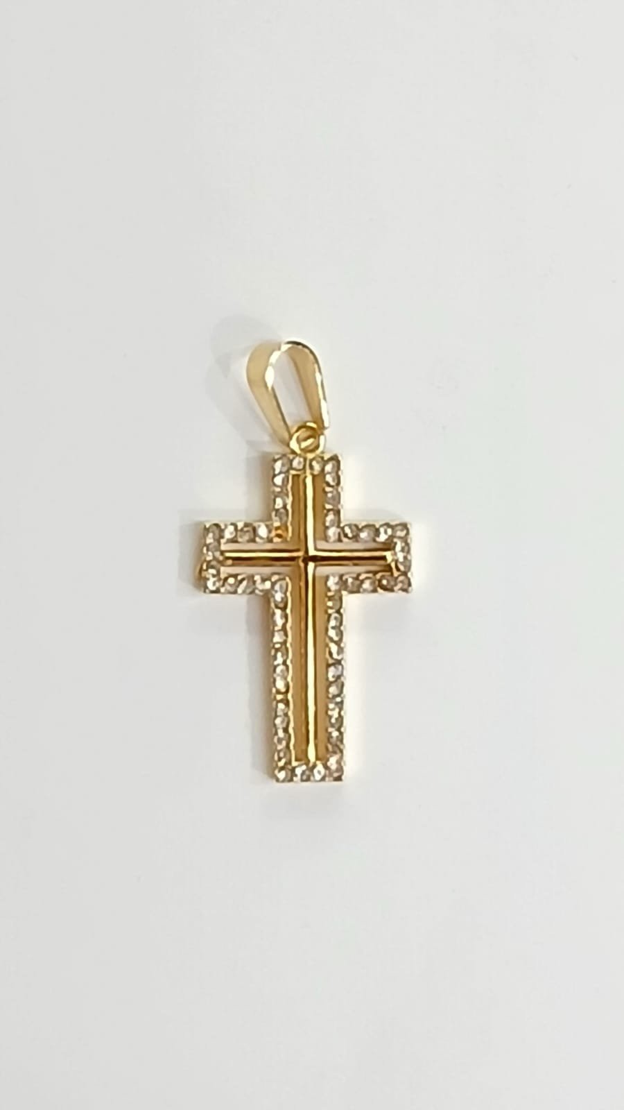 Colgante Cruz con circonitas 3 cm | Acero dorado