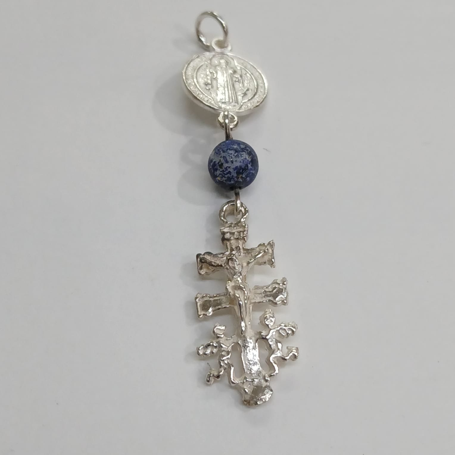 Colgante Cruz de Caravaca, Lapislázuli y medalla de S.Benito | Plata de Ley