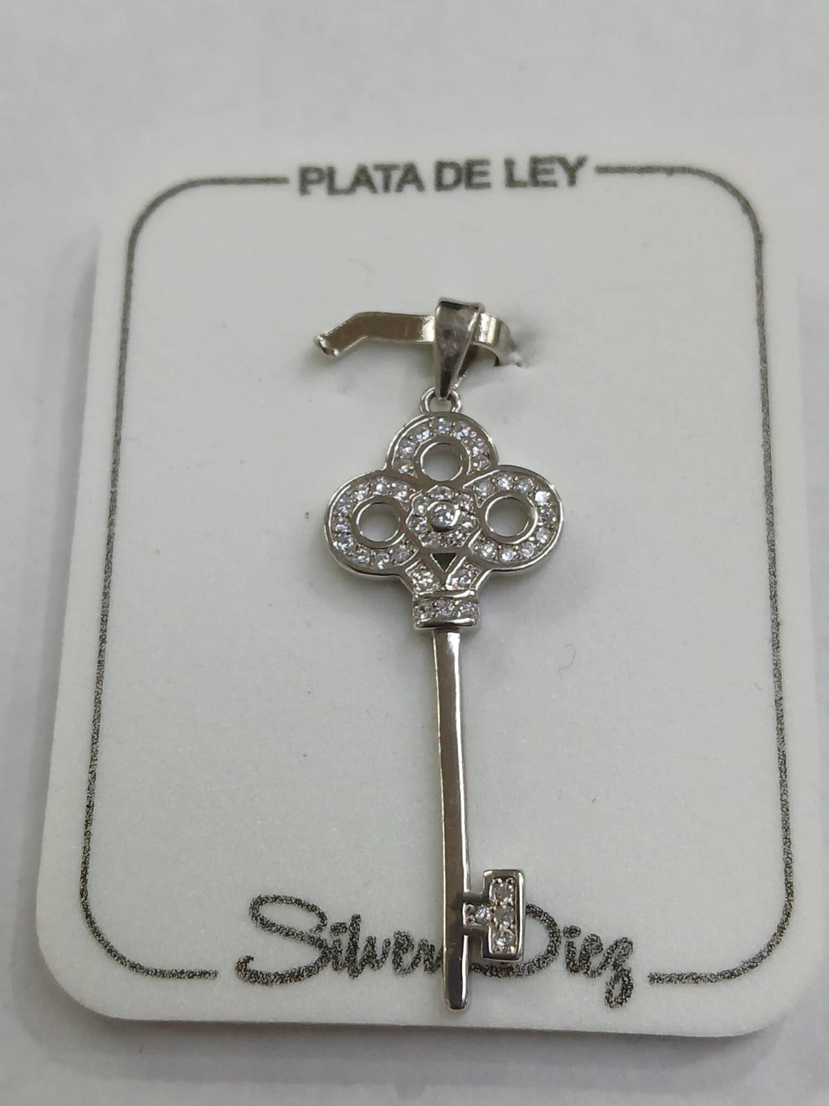 Deslumbra con este exquisito colgante de plata de ley en forma de llave. Este hermoso accesorio no solo añade un toque de sofisticación a cualquier atuendo, sino que también simboliza puertas abiertas y nuevas oportunidades. Con un acabado brillante y un diseño elegante, este colgante es perfecto tanto para ocasiones especiales como para el día a día. Medidas aproximadas: 3cm de largo x 1cm de ancho. No pierdas la oportunidad de añadir esta pieza única a tu colección de joyería.