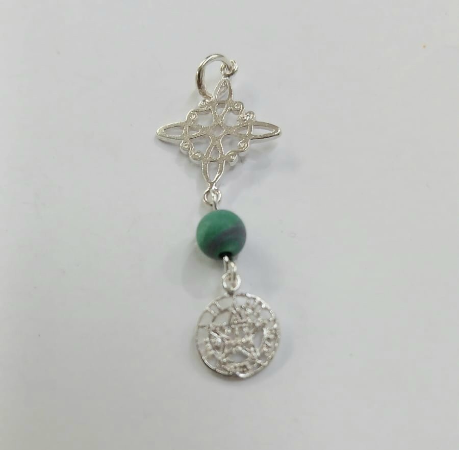 Colgante nudo de bruja, malaquita y tetragramaton | Plata de Ley | sin cadena
