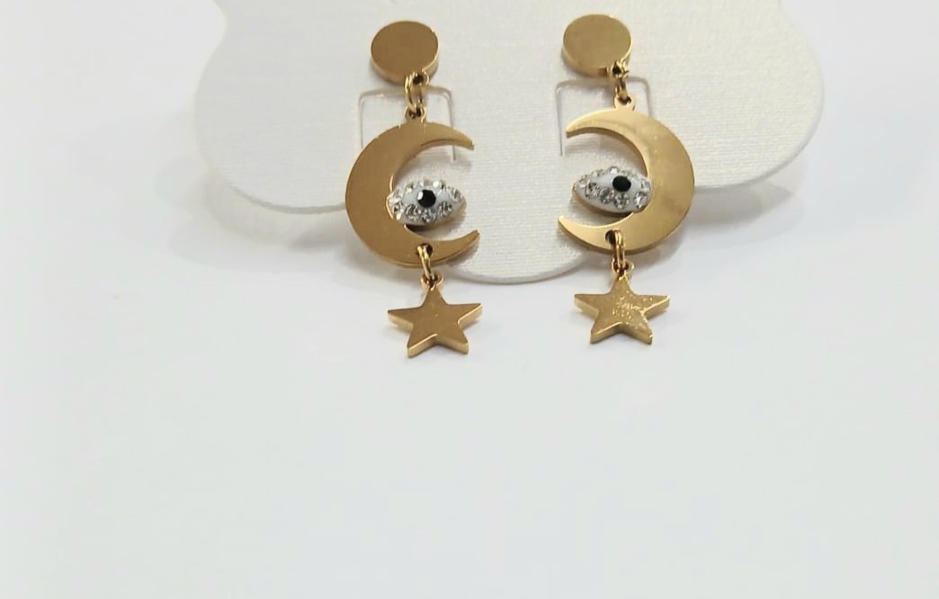 Pendientes luna y estrella acero dorado