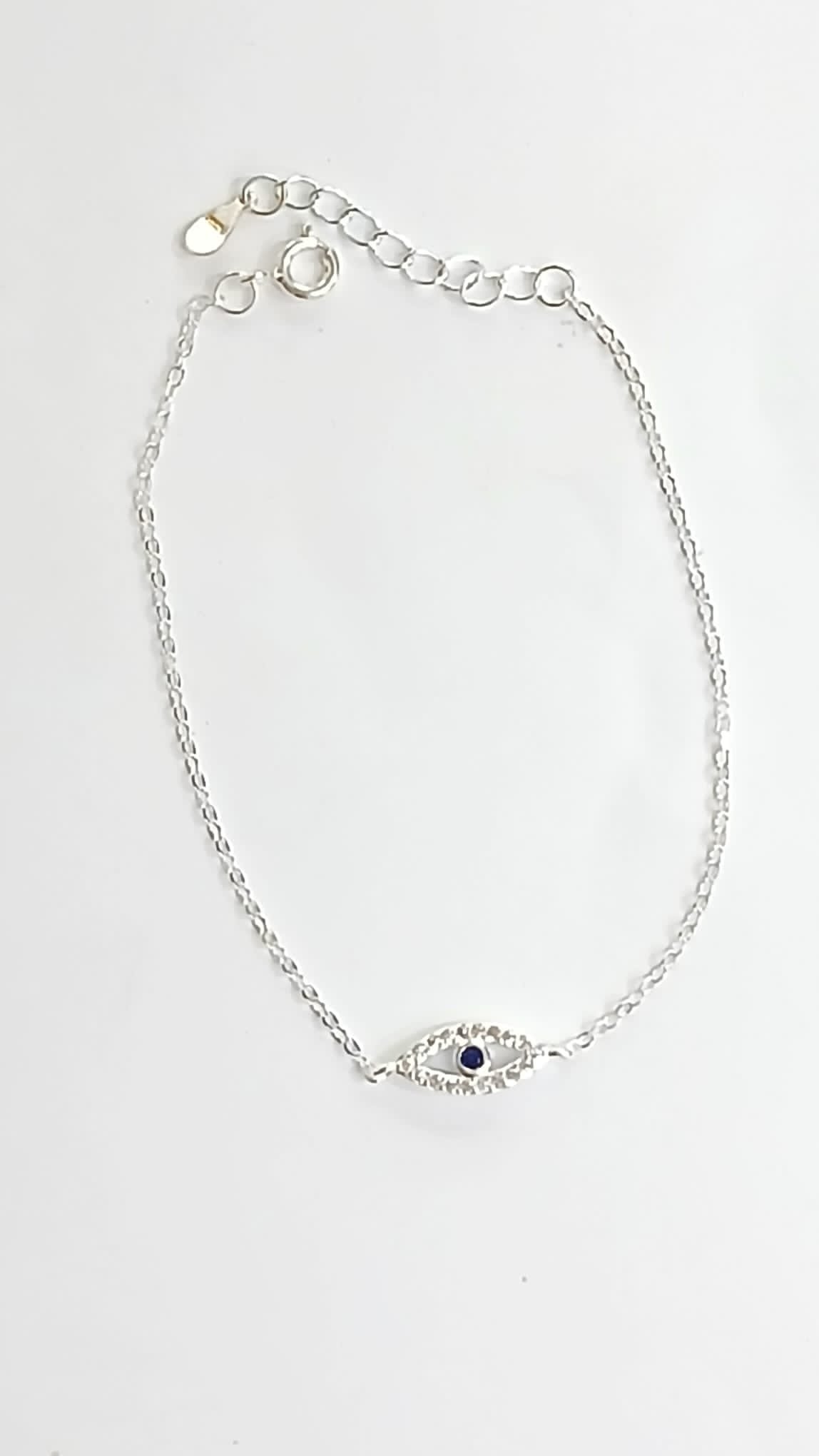 La pieza central de la pulsera exhibe el icónico Ojo Turco, elaborado con delicadas circonitas que realzan su brillo y atractivo. Este símbolo, conocido por disipar las energías negativas, está rodeado de un diseño elegante y contemporáneo que se adapta tanto a ocasiones casuales como formales. La plata de ley garantiza durabilidad y resistencia al uso diario, mientras que las circonitas añaden un toque de lujo que no pasará desapercibido.