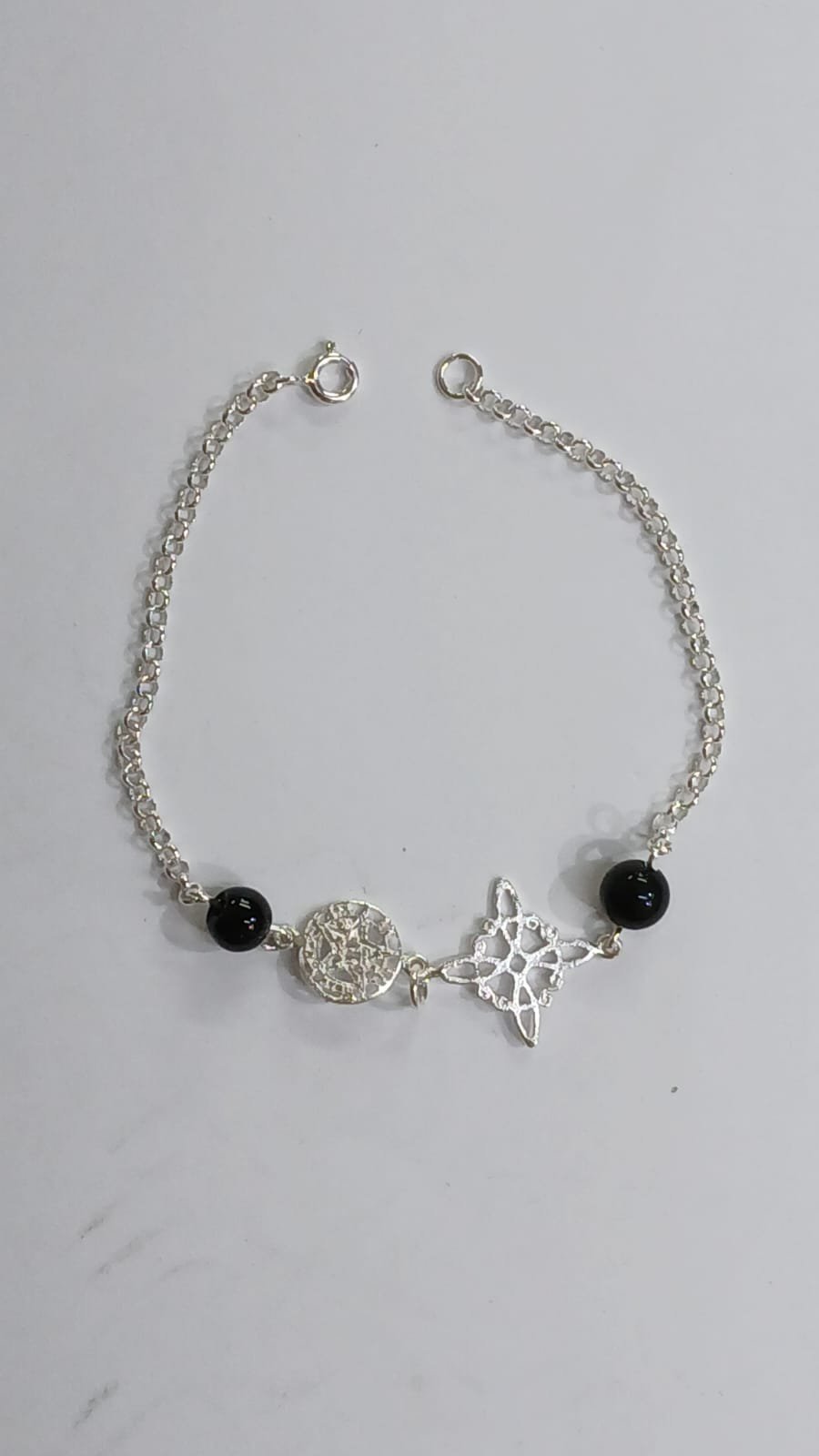 Pulsera Onice, Tetragramaton y Nudo de Bruja | Plata de Ley